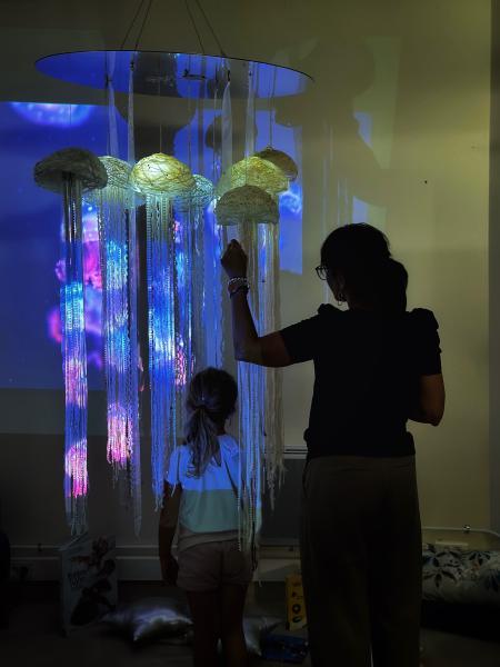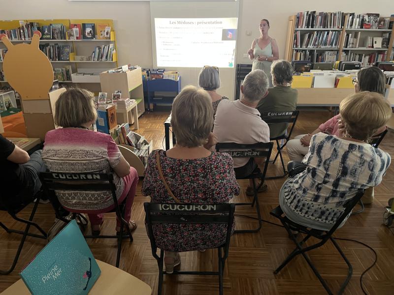 Une exposition a été présentée « Le Cercle des méduses oniriques » du cabinet Fabienne Aumont. Celle-ci a suscité magie et poésie et a permis aux enfants, lors de l’écoute d’un texte, de se sentir totalement immergés au fond de l’océan.